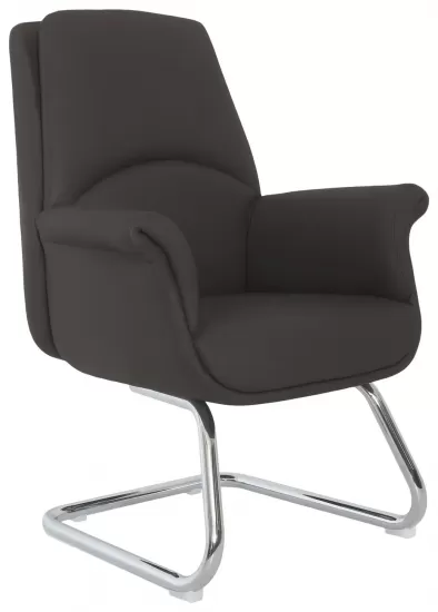 Конференц-кресло ВИКТОРИЯ D-40 отлично впишется в любой современный деловой интерьер благодаря стильному внешнему виду и продуманной конструкции. База кресла выполнена из металла и может выдерживать нагрузку до 100 кг. Хромированное покрытие не только придает мебели благородный и стильный вид, но и защищает каркас от возможной коррозии. Вместо стандартных четырех ножек, рама имеет сплошную П-образную основу, которая обеспечивает устойчивость стула на любом типе напольного покрытия. Сиденье со спинкой сделаны в виде монолитной конструкции, которая по бокам закрыта двумя высокими подлокотниками. Эргономичная форма обеспечивает комфортную посадку и анатомически правильную поддержку тела.