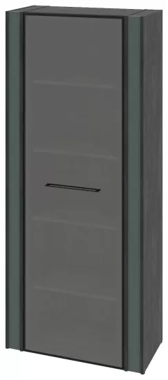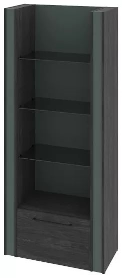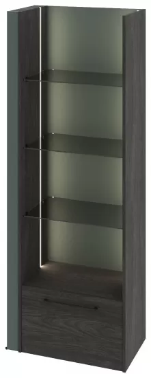 Стеллаж с подсветкой, стеклянными полками и ящиком- Дуб Шерман антрацит/Зеленый камень