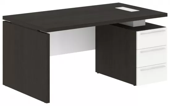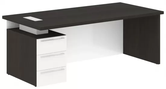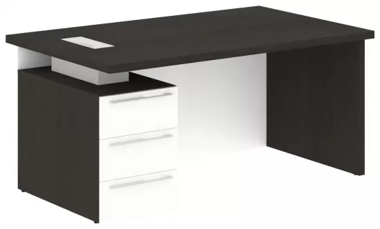 Стол руководителя правый- Дуб Мореный/Белый Глянец