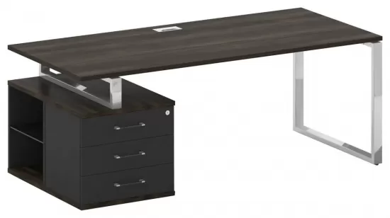Стол руководителя с опорной тумбой правый- Дуб Мали/Антрацит