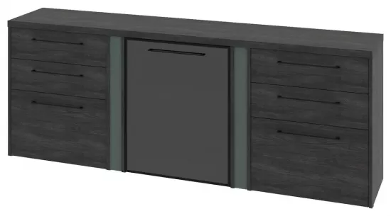 Тумба трехсекционная с дверью стеклянной в профиле правой и 6 ящиками- Дуб Шерман антрацит/Зеленый камень